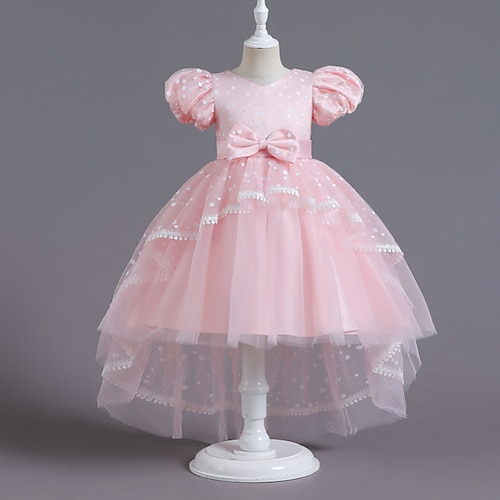 Abito da damigella d'onore bambina Ragazze Abito formale Abiti da sposa Feste Matrimonio Formale Elegante Moda Principessa Abito per la Prima Comunione Rete Tinta unica Manica Corta Girocollo Rosa
