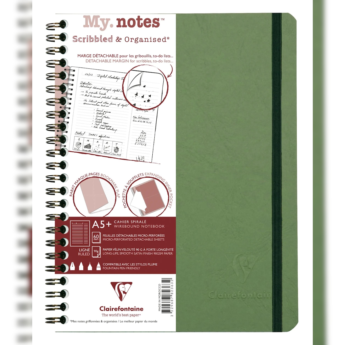 Clairefontaine 5x My.Notes Age Bag, Spiralheft A5+, 60 Blatt 90g, liniert mit Kopfleiste, abtrennbar, mikroperforiert - Grün 782363C