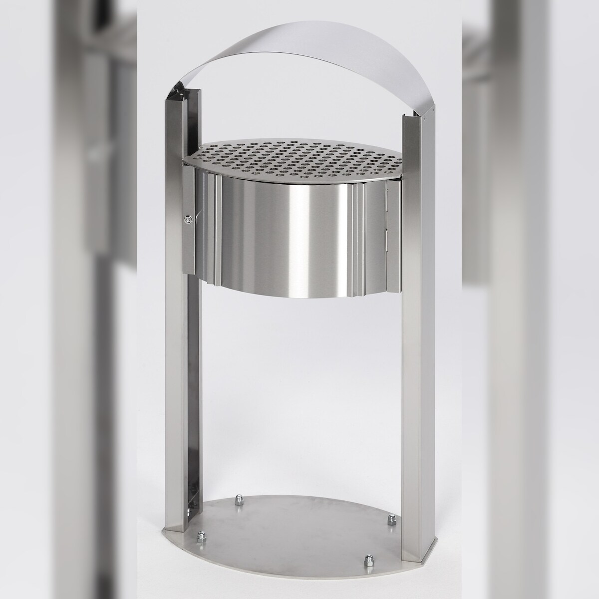 Abfallsammler mit Ascher und Regenschutzdach, Volumen 35 l, BxHxT 300 x 960 x 250 mm, silber VAR