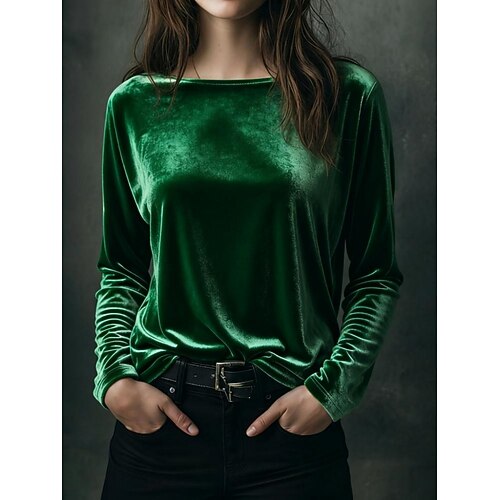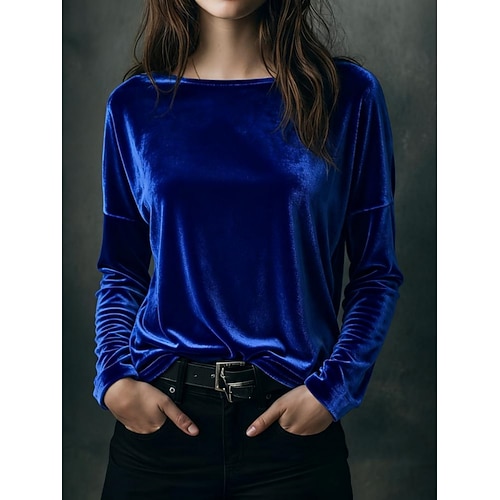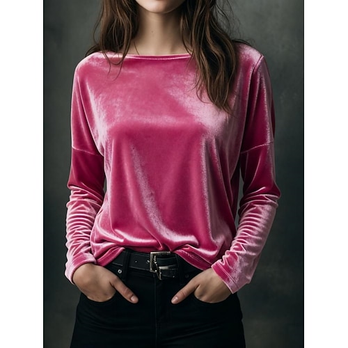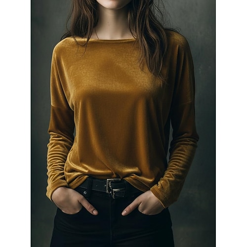 Damen Bluse Einfarbig Elegant Stilvoll Basic Langarm U-Boot-Ausschnitt Normale Oberteile Täglich Gerafft Blau Rosa Armeegrün Rote Gold Frühling Herbst Winter