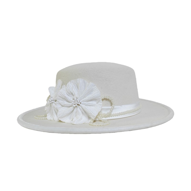 Women Wide Brim Bowler Hat Vintage Floral Wool Felt Fedora Floppy Elegant Fascinator Hat with Veil Lady Church Party Bucket