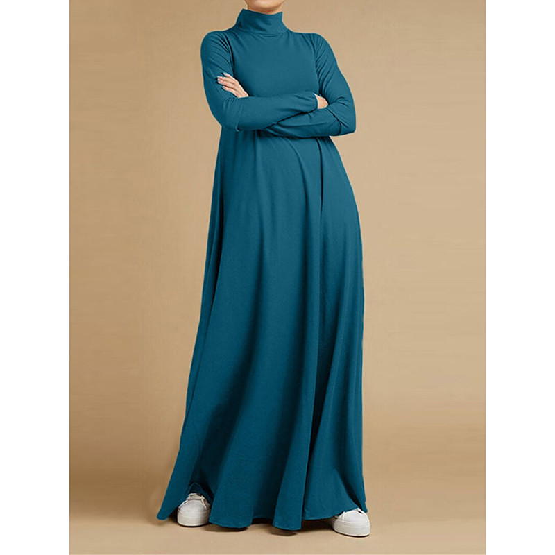 Women's Long Dress Maxi Dress Black Dress Casual Dress Winter Dress Cocktail Dress Fashion Basic Classic Daily Outdoor Vacation Loose Fit Long Sleeve Stand Collar Blue Black Pink Brown Fall Winter