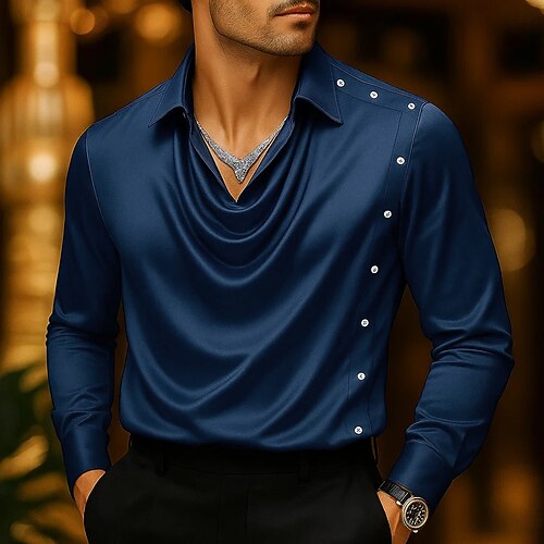 Per uomo Camicia Come la seta Camicia in raso Camicia casual Semplice Formale Matrimonio Nero Vino Blu marino Oro Manica Lunga Scollo a Cascata Primavera Autunno Tutte le stagioni Abbigliamento