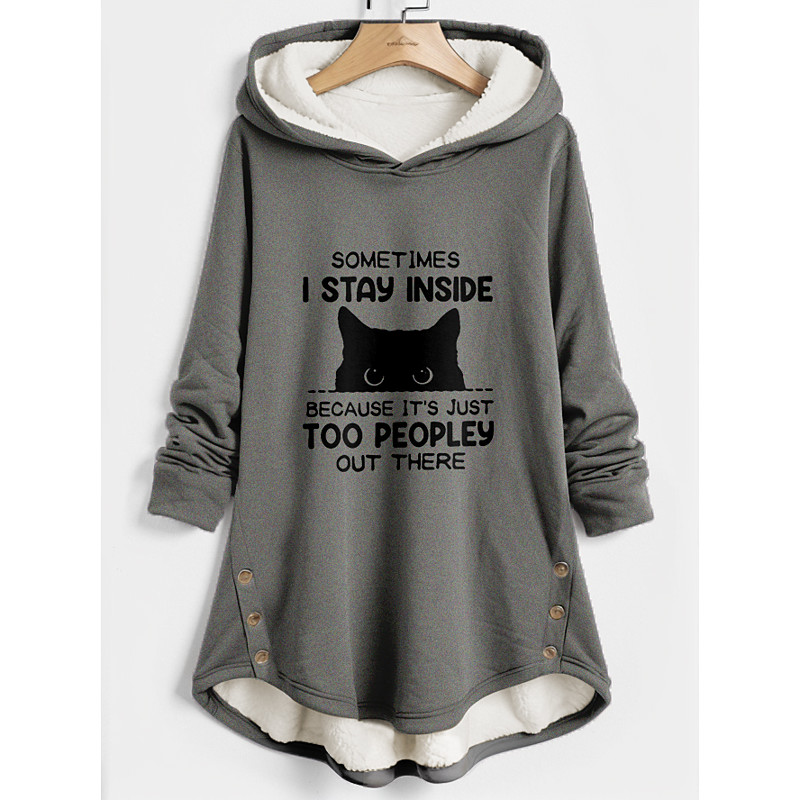 Women's Hoodie Sweatshirt Pullover Fleece Lined Warm Pajamas Sherpa Cat Letter Casual Sports Button Print Warm Funny Fuzzy Long Sleeve Top Micro-elastic Fall Winter Comfrt Breathable Soft Fabric