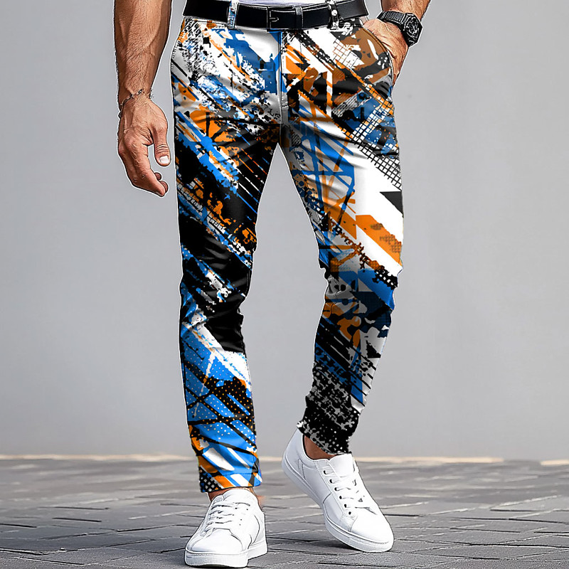 Men's Dress Pants Trousers Suit Pants Slim Fit Pants with Pockets Geometric Abstract Art Full Length Outdoor Casual Red Blue Micro-elastic