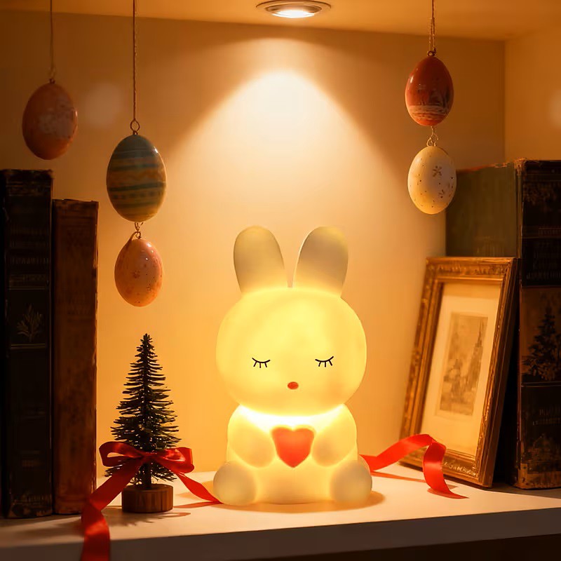 Cute Easter Bunny Night Light Battery Powered Glowing Bunny Lamp Home Decoration for Holiday Bedroom Bedside Table Living Room