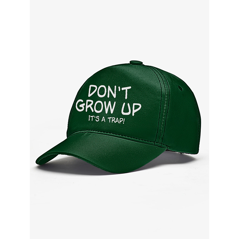 Men's Funny Embroidered Baseball Cap – "Don't Grow Up It's a Trap!" Adjustable Dad Hat for Adults and Teens, Casual Outdoor Streetwear