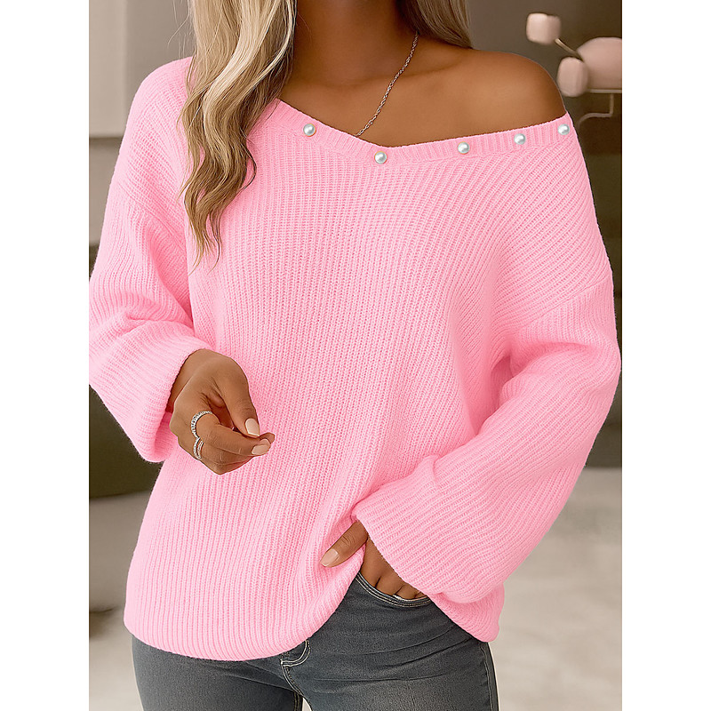 Women's Sweater Pullover Elegant Fashion Cute V Neck Beaded Long Sleeve Regular Tops Knit Daily Date Valentine Black White Spring