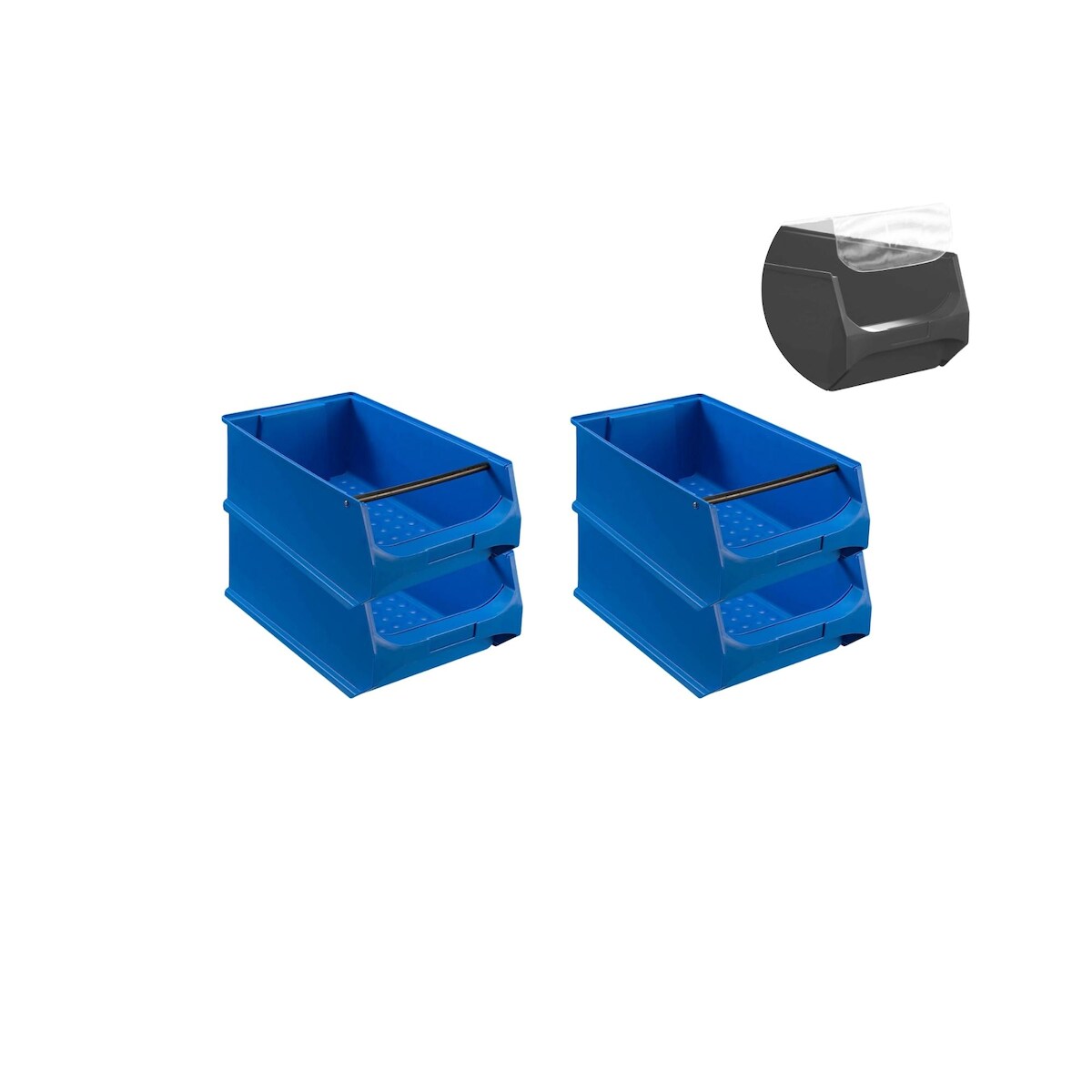 PROREGAL 4x Blaue Sichtlagerbox 5.1 mit Griffstange & Abdeckung | HxBxT 20x30x50cm | 21,8 Liter | Sichtlagerbehälter, Sichtlagerkasten