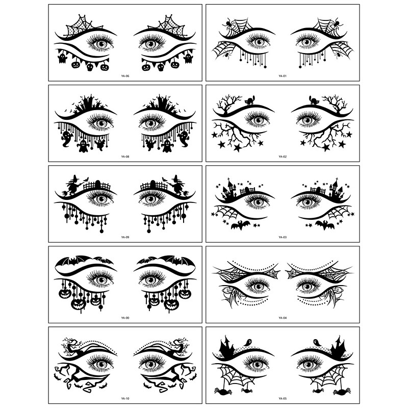 Halloween Corner Eye Makeup Tattoos – 10pcs Premium Temporary Face Tattoos for Party Holiday Decorations