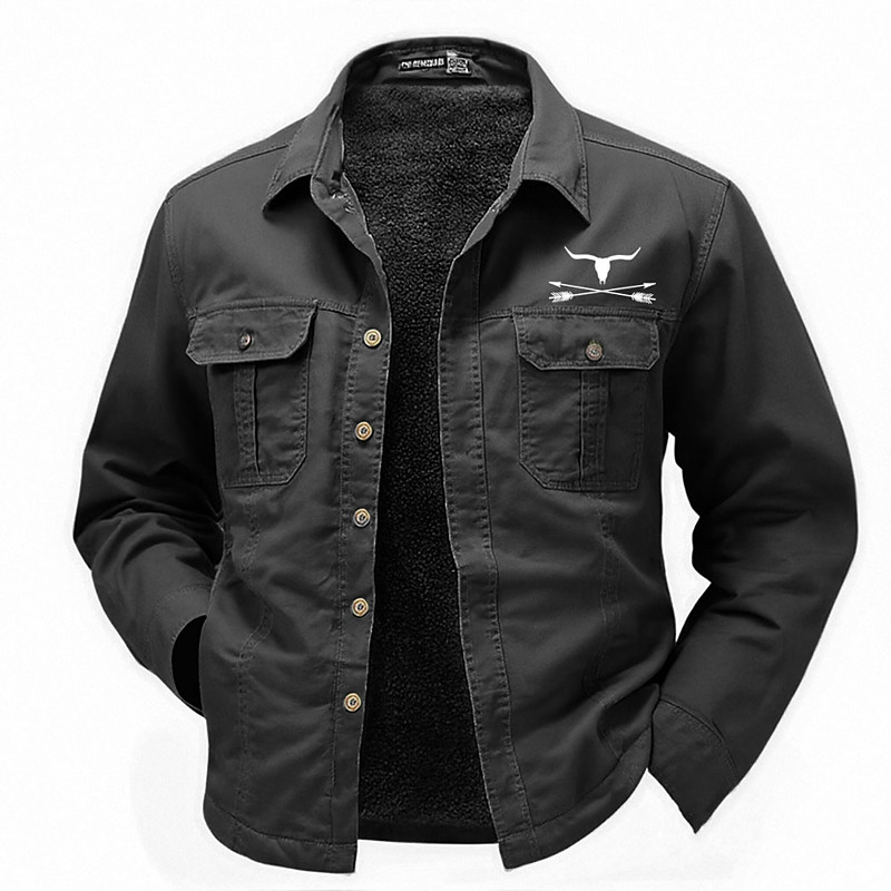 Men's Cow Print Western Shirt Cargo Shirt Cowboy Shirt Long Sleeve Military Outdoor Casual WorkWear Fall Winter Turndown Fleece Lined Cotton Button Up Shirts Black Army Green Khaki