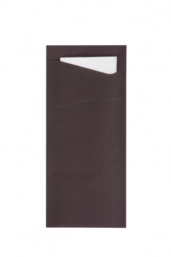 Prime Guest Bestecktasche Prime Fit in Dunkelbraun 85 x 190 mm, mit 2-lagiger Tissue-Serviette in Weiß -500 Stück