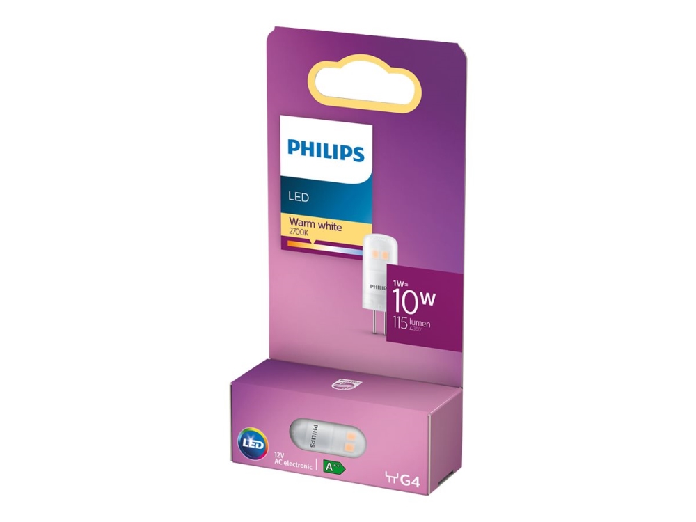 Philips - LED-lyspære - form: kapsel - G4 - 1 W (ekvivalent 10 W) - klasse F - varmt hvitt lys - 2700 K