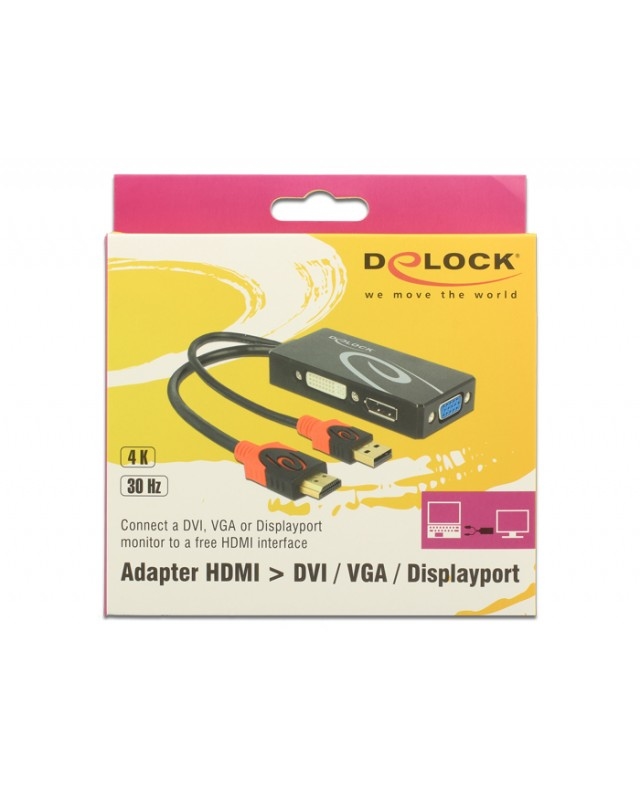 Delock Adapter HDMI -> DVI24+5/VGA/Displayport 4K schwarz Digital/Display/Video DisplayPort DVI