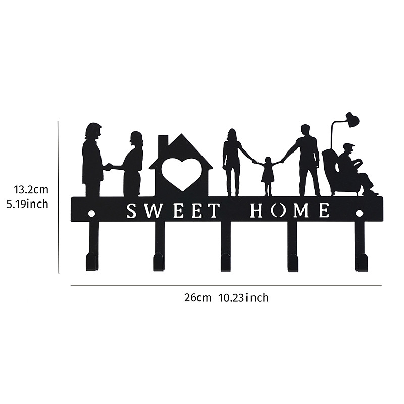 1PC Wall-mounted Sweet Home/ Coffee English Decorative Hook (Without Nails) Simple Design Iron Key Rack Suitable for Closet Behind Door Kitchen Wall Decoration and Storage