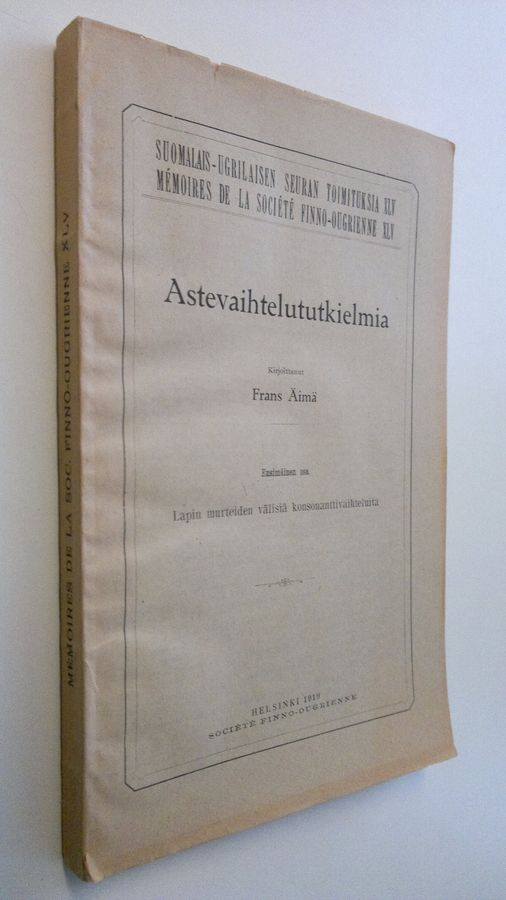 F. Äimä : Astevaihtelututkielmia 1. osa, Lapin murteiden välisiä konsonanttivaihteluita (osittain lukematon)
