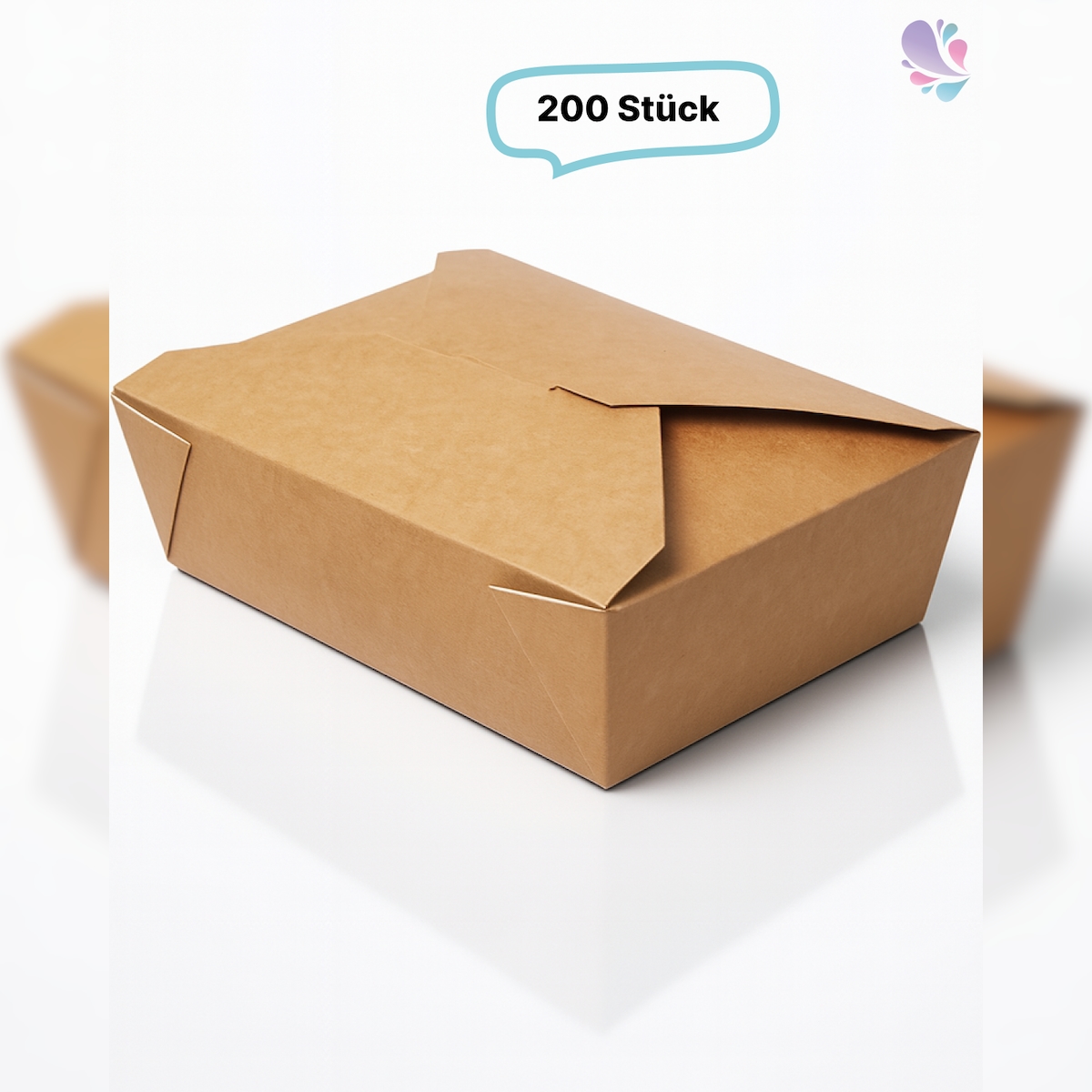 Blanc HYGIENIC Lunch-Box 1000ml 200 Stk, to go, take away, biologisch abbaubar, natürliches Design, weiße Innenschicht