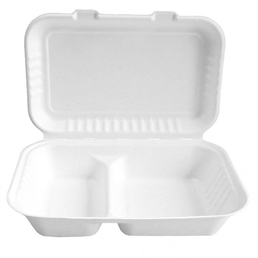 BIO Lunchbox mit Deckel, 2-geteilt, weiß, 24,5 x 16 cm, 10 x 25 Stück
