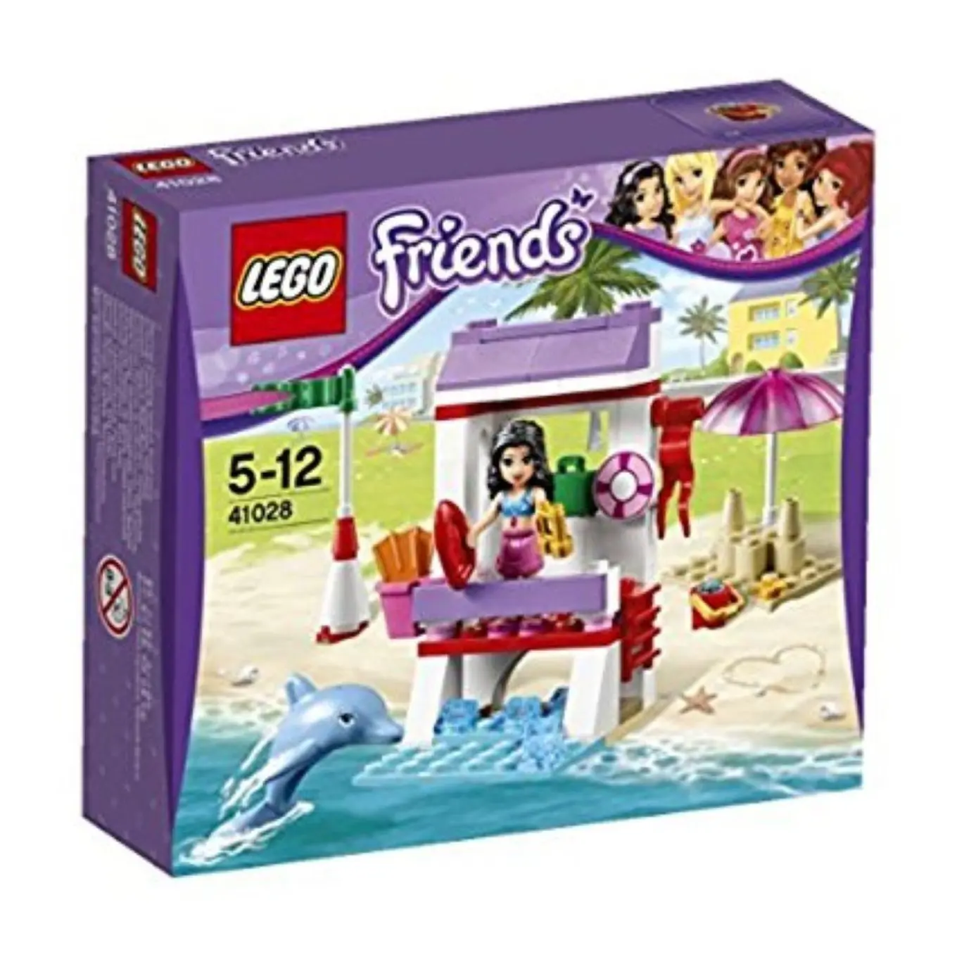 LEGO Friends Emmas Einsatz am Strand Bauset, 78 Teile, lila/weiß/rot, Kunststoff, Strandmotiv, Delfinfig