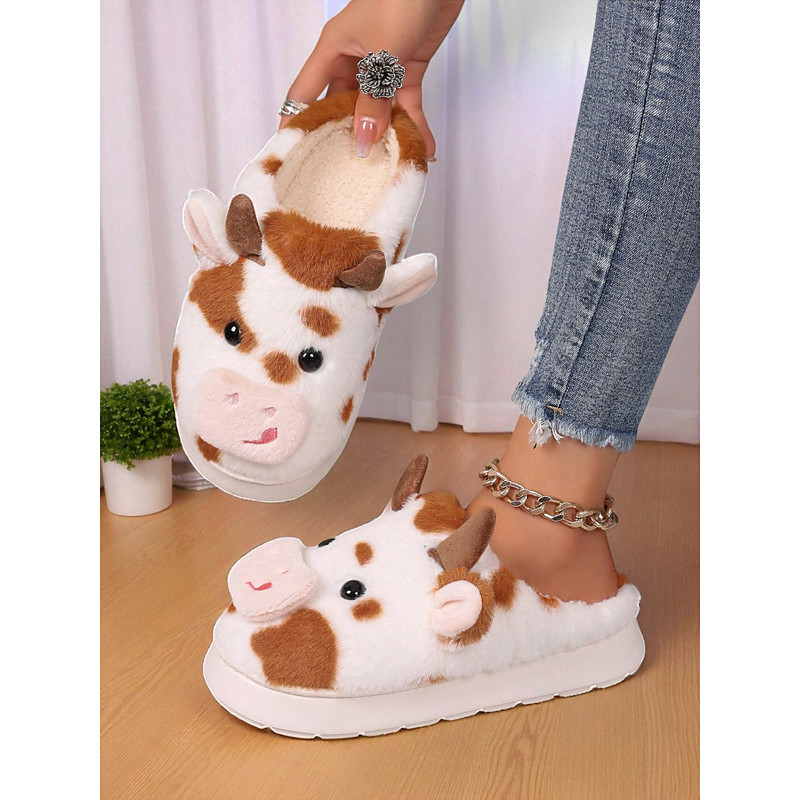 Women's Cute Plush Cow Slippers with 3D Animal Design and Soft Lining – Cozy Indoor Winter House Shoes for Home and Holiday Gifting