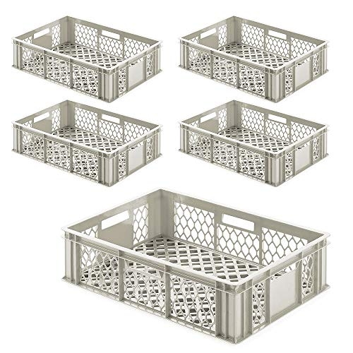 PROREGAL 5x Eurobox NextGen Grip | HxBxT 17x40x60cm | 34 Liter | Griffe geschlossen | Glatter Boden | Eurobehälter