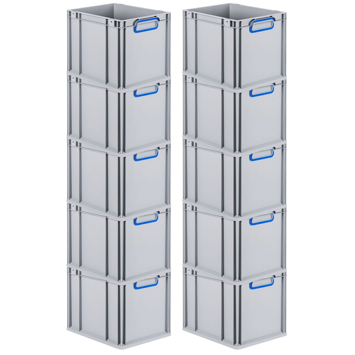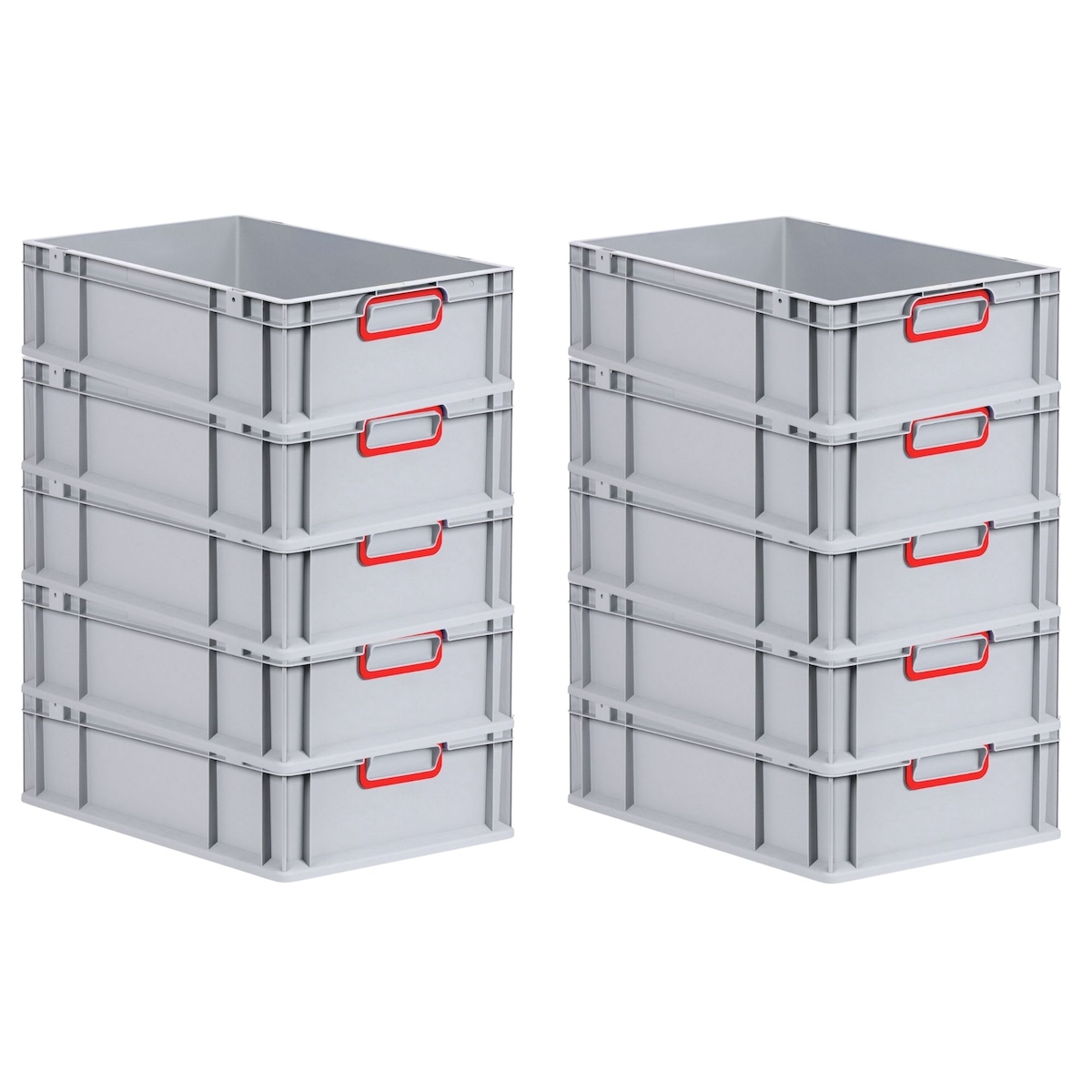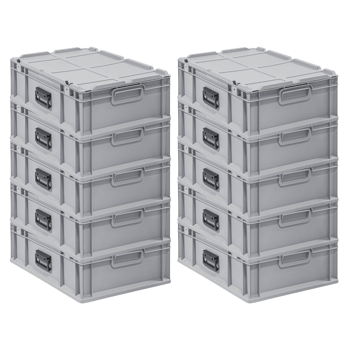 PROREGAL 10x Eurobehälter mit geschlossenem Griff | HxBxT 17,5x40x60cm | 30 Liter | Grau | Eurobox, Transportbox, Transportbehälter