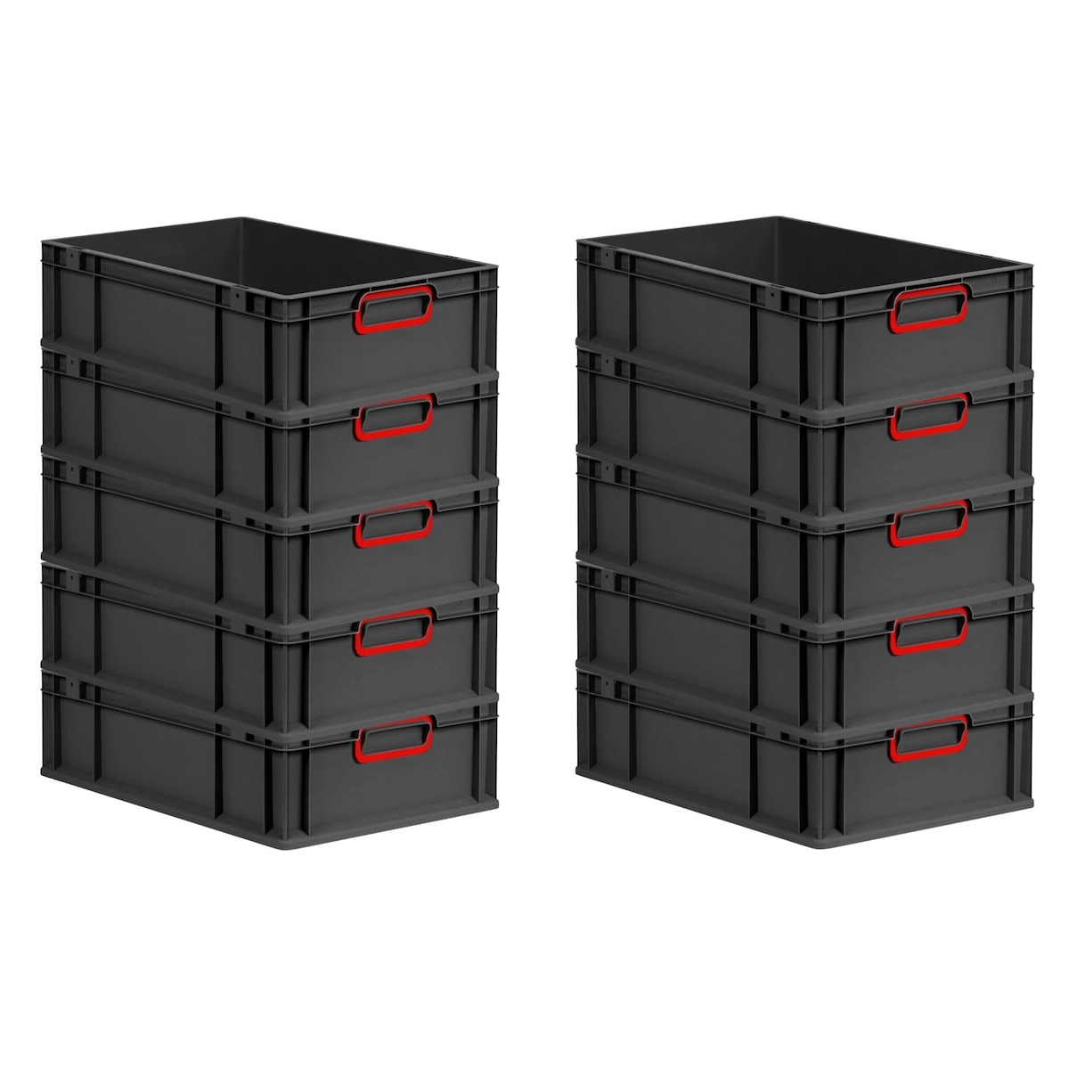 PROREGAL SparSet 10x Eurobox NextGen Color, HxBxT 32x30x40cm, 30 Liter, Griffe rot zu, Schwarz, Eurobehälter, Transportbehälter