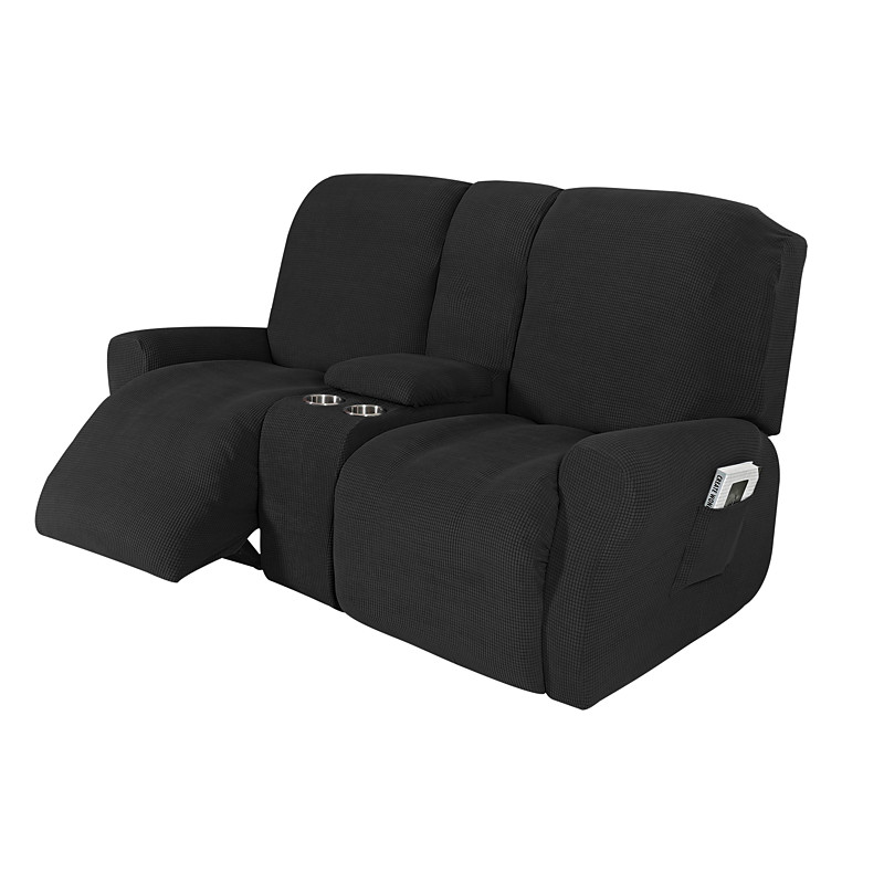 Stretch Recliner Covers Burgundy Loveseat with Middle Console Slipcover Recliner Loveseat Sofa Cover with Side Pocket(3 Armrest Cover,3 Backrest,2 Seat Cover)