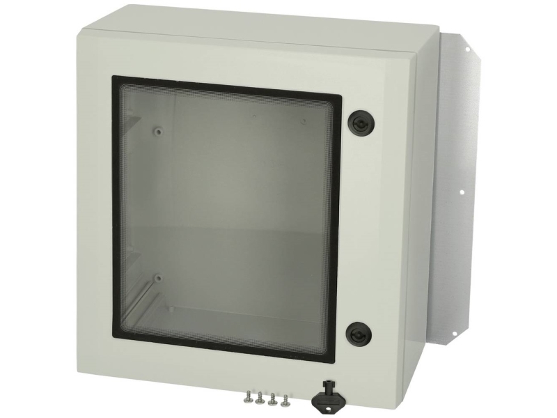 FIBOX Vægskab ARCA, polycarbonat, med grå låge, 1 lås, hængsel på kort side, HxBxD, 200x300x150mm, med montageplade