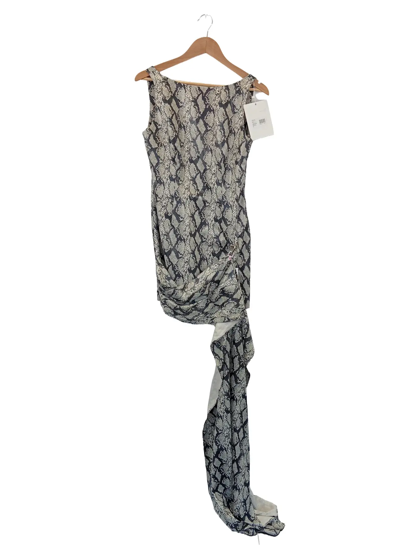 ROKH Damenkleid Midi 38 Grau Schwarz Schlangenmuster