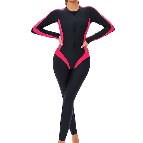 Per donna Top sottomuta Costumi da bagno interi Muta da sub Patchwork UPF50 Asciugatura Rapida Alta elasticità Manica Lunga Costume da Bagno Cerniera Frontale Surf Immersione Snorkeling Estate
