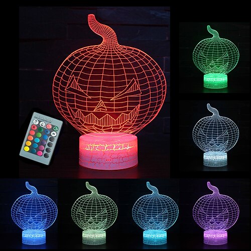 3D Kürbis Nachtlicht Illusion Lampe Halloween Geschenk Dekoration für Kinder 16 Farben mit Fernbedienung für Kinderzimmer mit Touch 3D Illusion Nachtlicht Weihnachtenamp; Halloween-Geschenke für