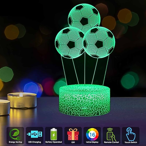 Fußball-Nachtlicht für Kinder, 3D-Fußball-Illusionslampe, 16 Farben, dimmbar, mit Fernbedienung Smart Touch, tolle Geschenkidee zum Geburtstag oder zu Weihnachten für Jungen, Mädchen und Kinder
