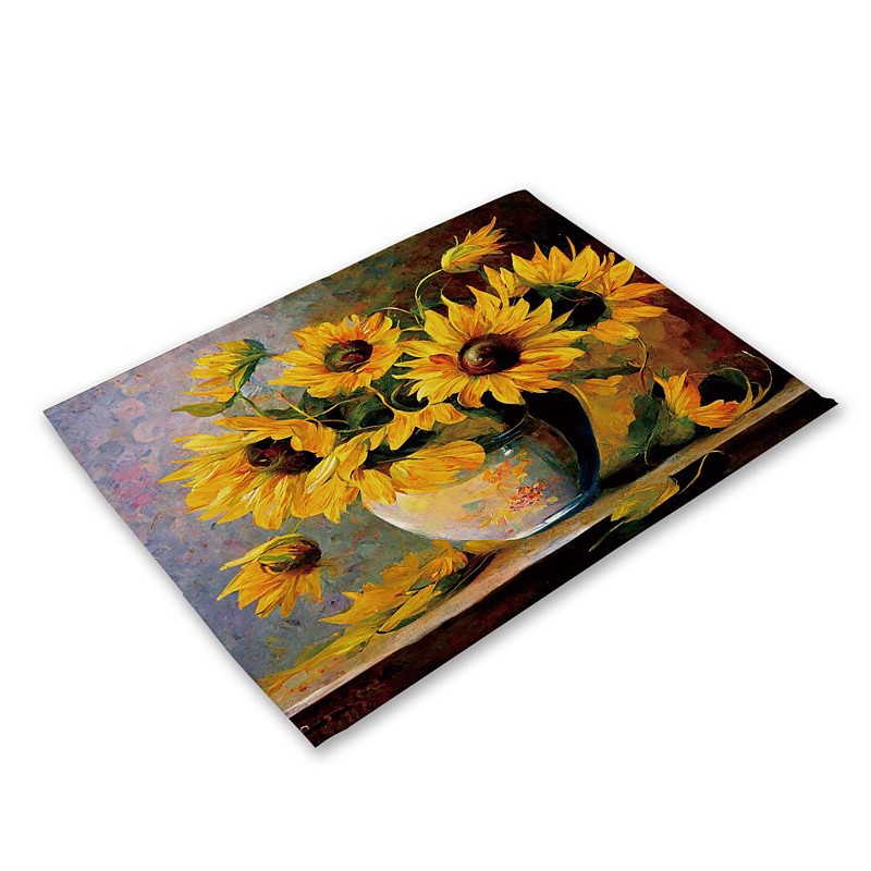 Sunflowers Placemats Heat Resistant Farmhouse Table Place Mat Stain Resistant Placemat, Placemat for Wedding Kitchen Dining Table Decoration Indoor Outdoor