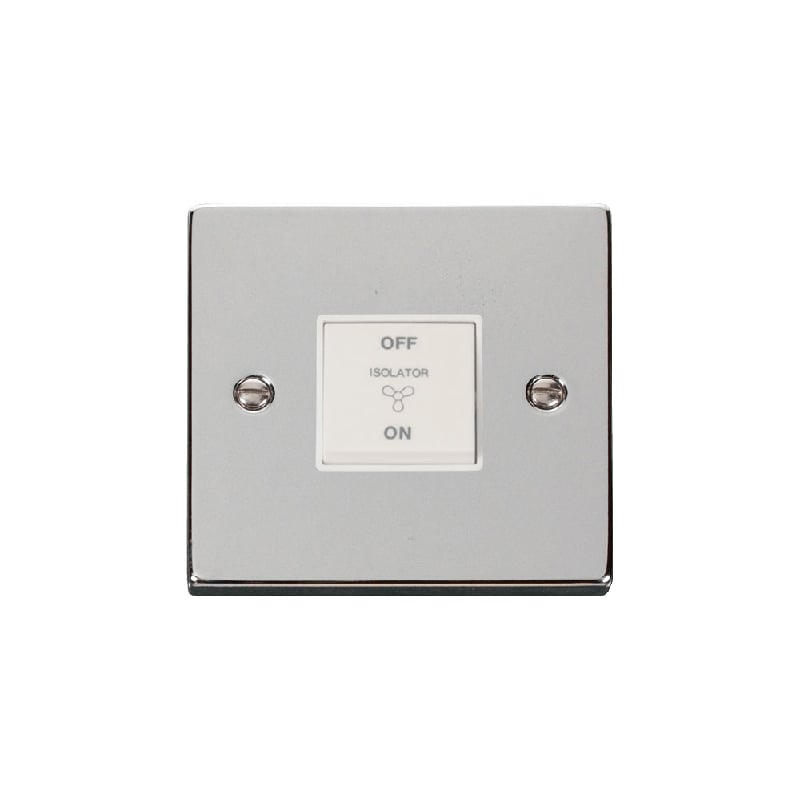 Click Deco 10A 1 Gang 3 Pole Fan Isolation Switch Polished Chrome Insert White