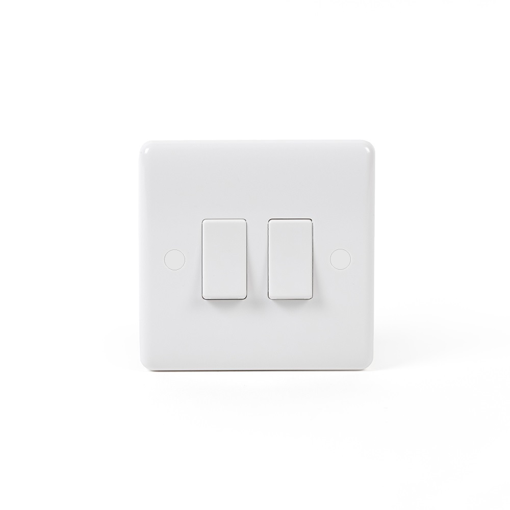 Lieber Silk White 2 Gang Intermediate Light Switch - Curved Edge