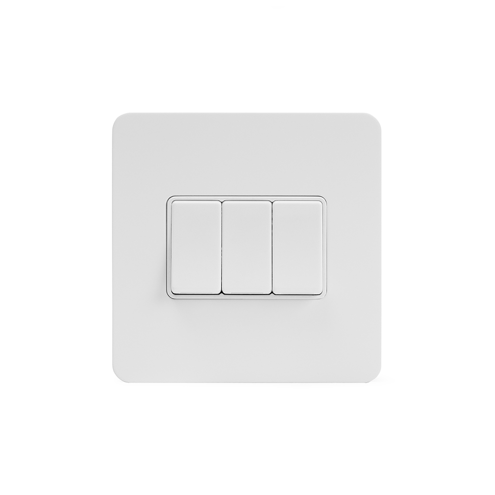 Soho Lighting White Metal Flat Plate 10A 3 Gang 2 Way Light Switch