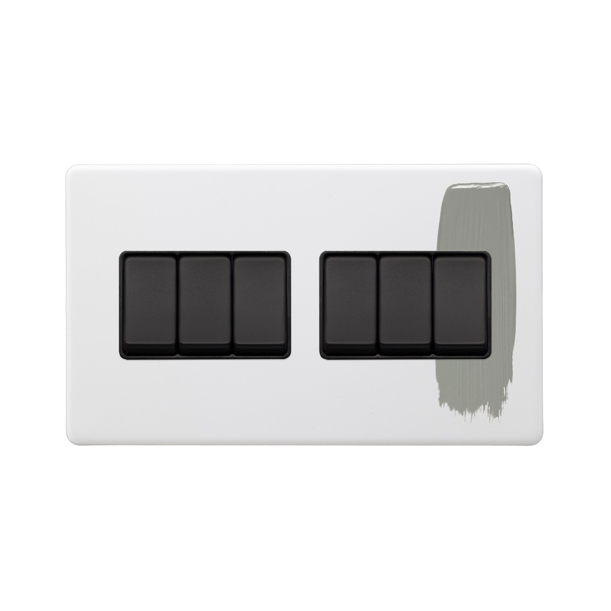 Soho Lighting Primed Paintable 6 Gang 2 Way 10A Light Switch with Matt Black Switch - Size: 86mm x 146mm x 4.5mm