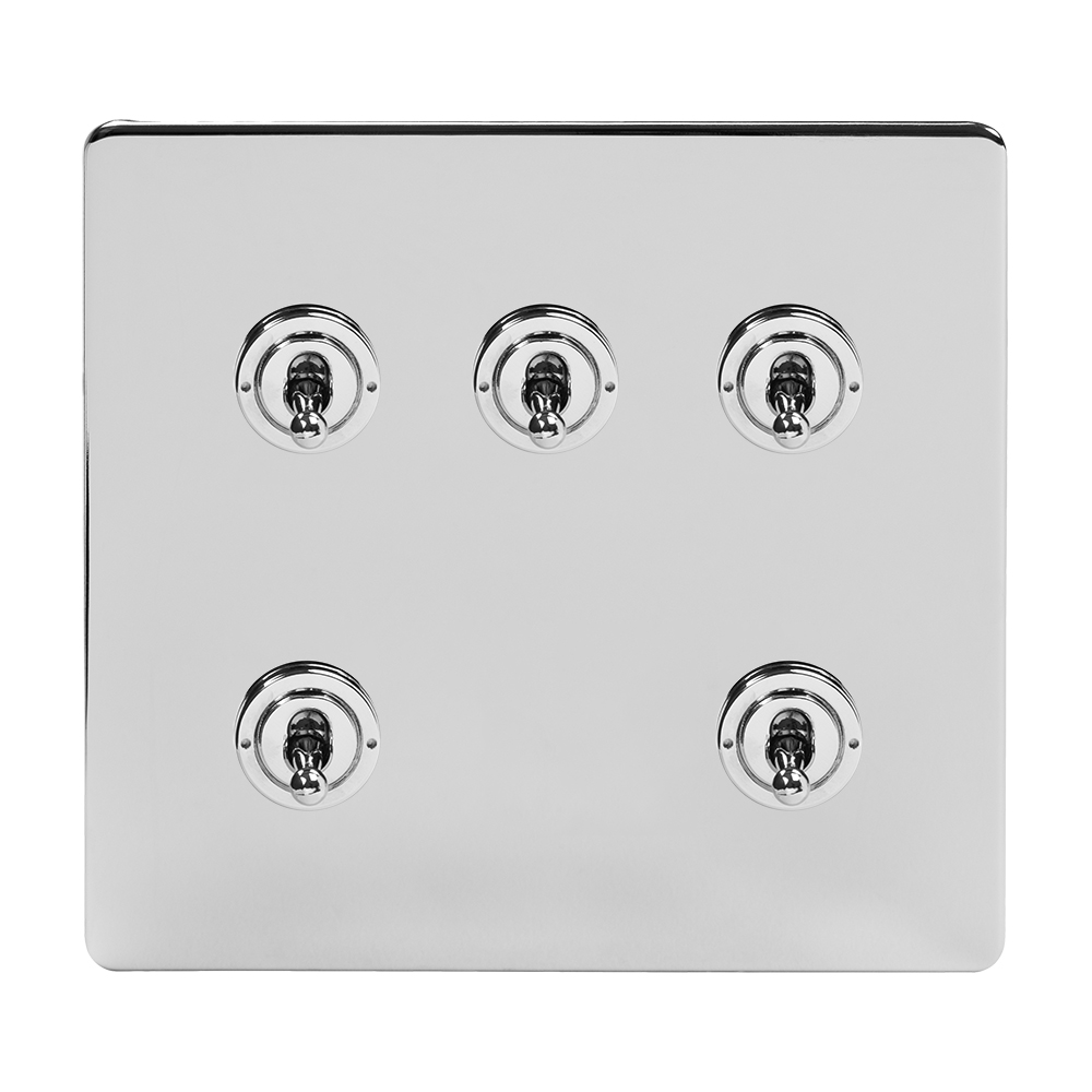 Soho Lighting Polished Chrome 5 Gang Toggle Light Switch 20A 2 Way Screwless