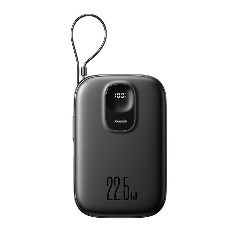 Joyroom JR-PR1 10000mAh 22,5W Powerbank mit integriertem ausziehbarem USB-C-Kabel - Schwarz