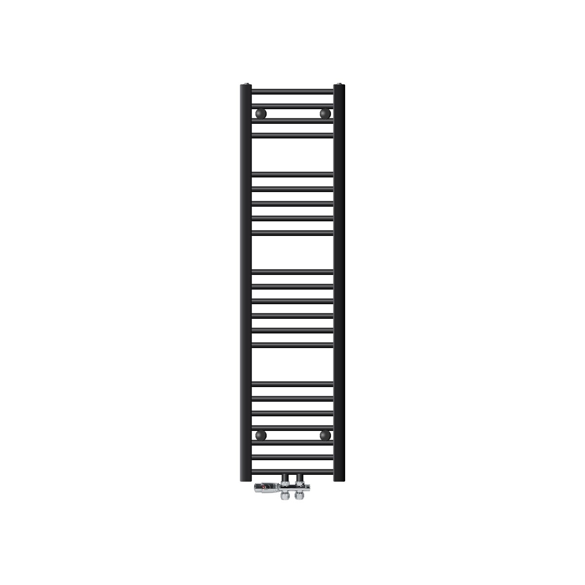 LuxeBath ECD Germany Badheizkörper Mittelanschluss 300×1400 mm Anthrazit, gerade, Thermostat-Set (Durchgang Boden)