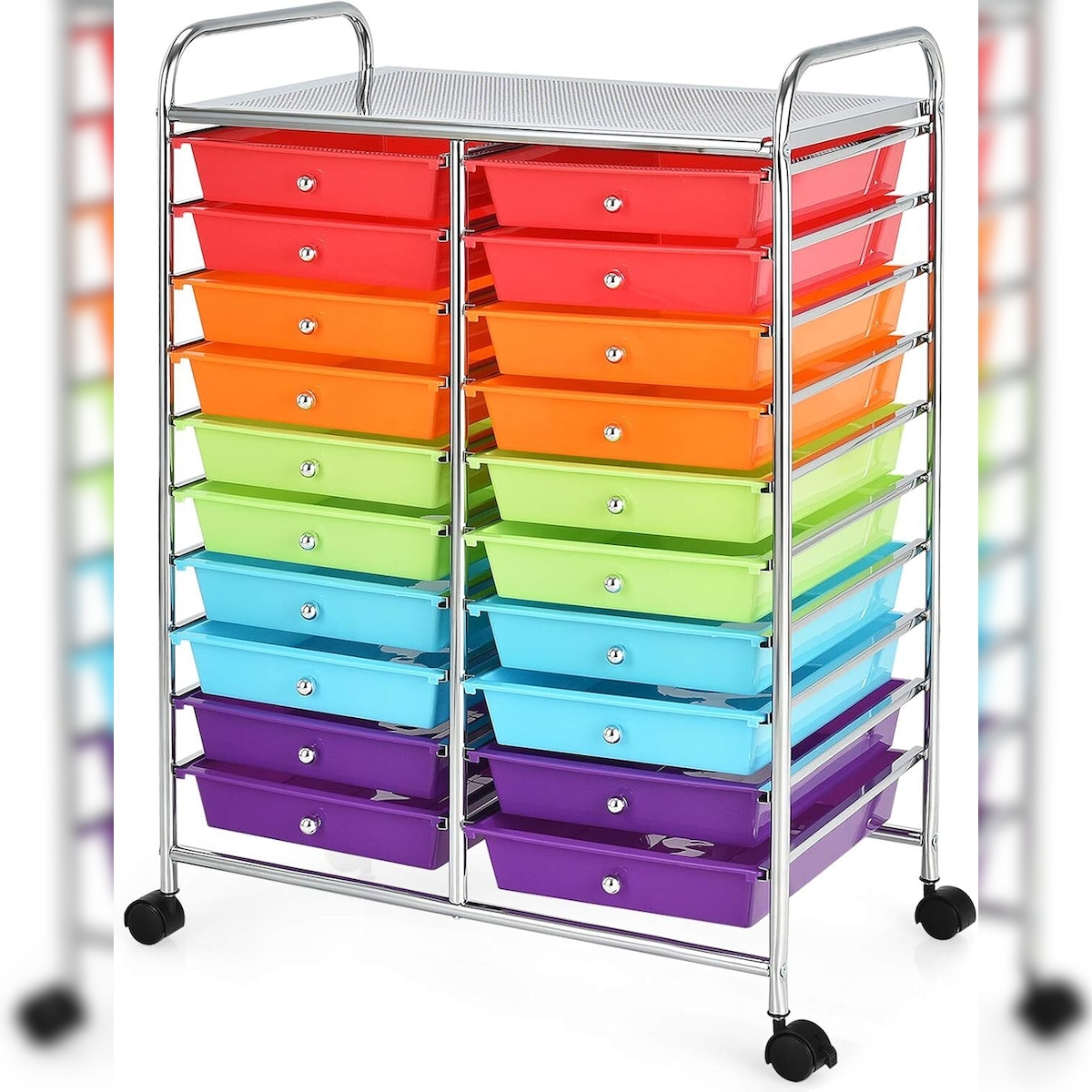 COSTWAY Rollwagen mit 20 stapelbaren Schubladen, Schubladenwagen, Rollcontainer mit Metallrahmen und Ablage