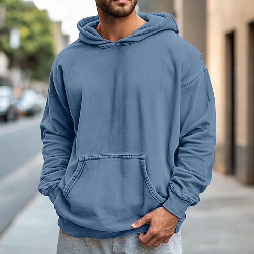 Per uomo Maglia Felpa con cappuccio invecchiata Aalbicocca Nero Rosa Verde militare Marrone Girocollo Semplice Quotidiano Ferie Uscire 100% Cotone Vintage Retrò Casual Autunno Inverno Abbigliamento