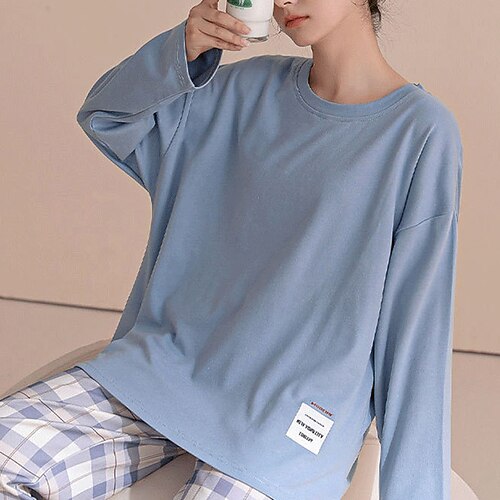 Per donna Pigiama Abbigliamento da Casa Set Pigiama Casual Griglia / Plaid Elastico in vita Pantalone Vacanza Casa Manica Lunga Girocollo Rosa Blu Verde Autunno Inverno Vestibilità regolare