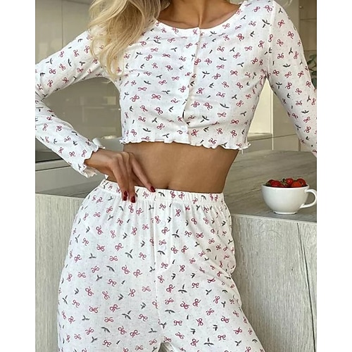 Per donna Pigiama Abbigliamento da Casa Set Pigiama Caldo Attivo Moda Floreale Grafico Colore Puro Bottoni Pantalone Casa Quotidiano Da letto Manica Lunga Girocollo Bianco Rosa Estate Primavera