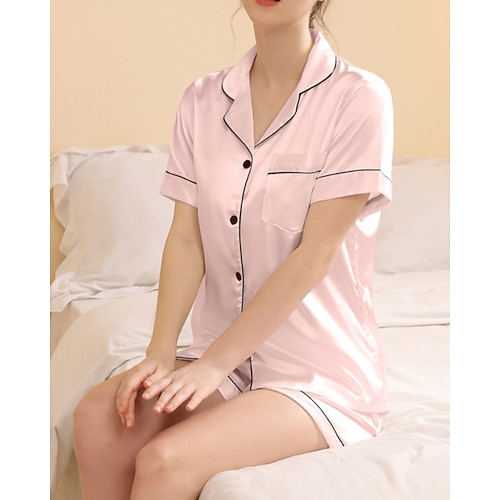 Per donna Pigiama Abbigliamento da Casa Set Pigiama Casual Morbido Raso Colore Puro Bottoni Shorts Quotidiano Casa Da letto Manica Corta Colletto a Camicia Blu Rosa chiaro Nero Rosa Verde Estate