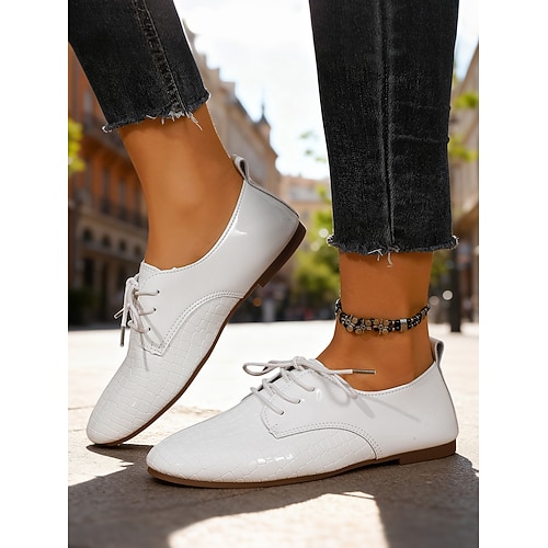 scarpe basse oxford marroni da donna con motivo coccodrillo in rilievo – comode scarpe da lavoro con lacci per ufficio, business casual e spostamenti quotidiani