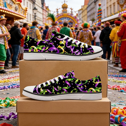Sneaker da uomo in tessuto con stampa a nastro di carnevale scarpe classiche basse casual in tela per Mardi Gras festival di strada sfilate viaggi e uso quotidiano