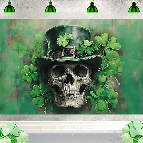 Festa di San Patrizio arazzo Striscioni Coperta Costumi scheletro Trifoglio Carino Romantico 3D Camera da letto Soggiorno Dormitorio Stanza per adolescenti Dormitorio universitario Portico a muro