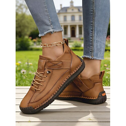 scarpe da ginnastica casual rosse da donna - scarpe comode con lacci e cuciture con dettagli a contrasto, ideali per passeggiate quotidiane, commissioni all'aperto, brunch e incontri informali